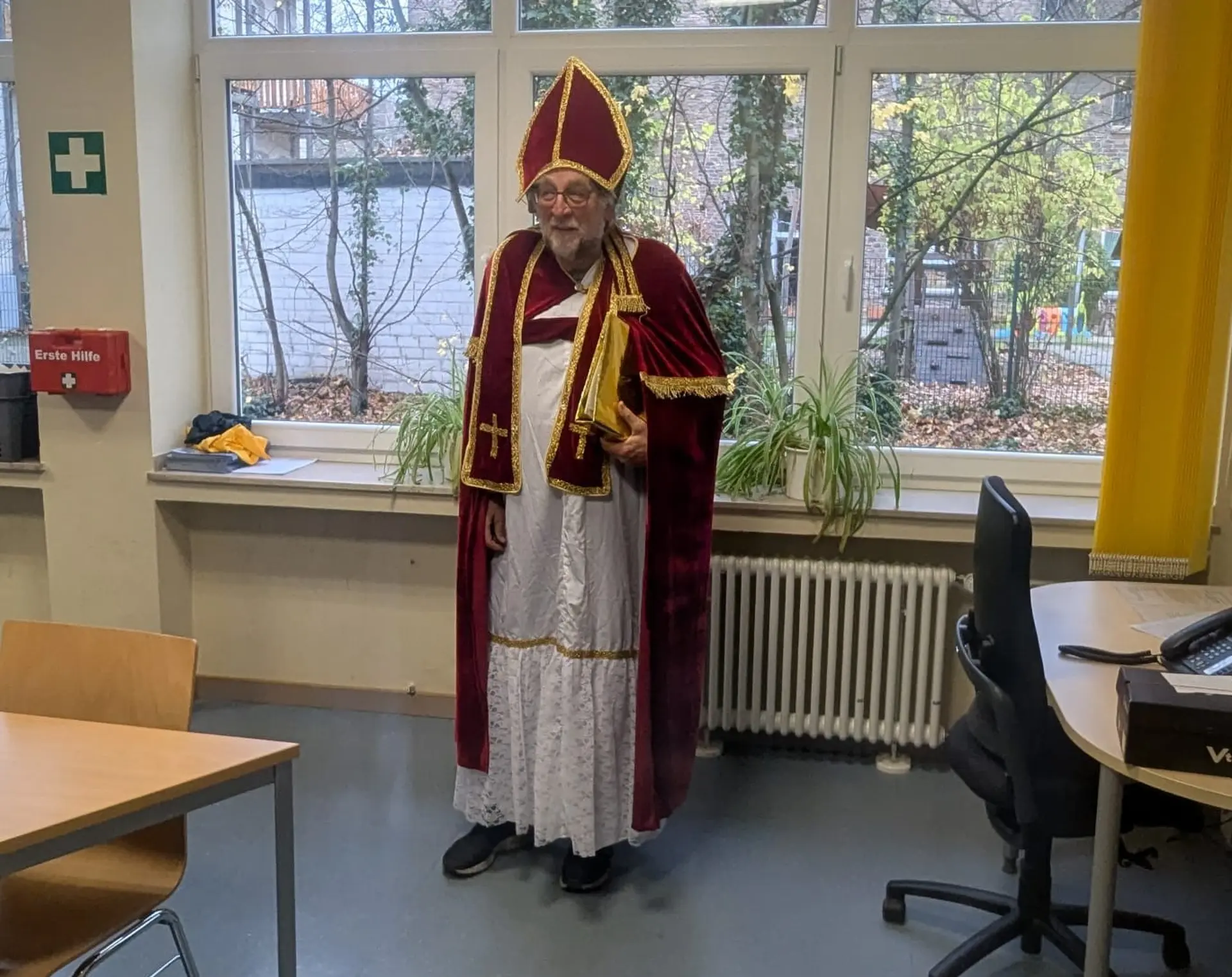 Am 6. Dezember war es endlich soweit: Der Nikolaus und sein treuer Helfer besuchten unsere Schule! Mit seiner warmherzigen Art zog der Nikolaus durch die Flure und brachte alle zum Strahlen. Besonders die Grundschulklassen hatten großen Grund zur Freude. Der Nikolaus machte dort Halt, unterhielt sich mit den Kindern und überraschte sie mit kleinen Geschenken. Die leuchtenden Kinderaugen und fröhlichen Gesichter machten den Tag zu einem ganz besonderen Erlebnis. Ein herzliches Dankeschön an den Nikolaus und seinen Helfer – ihr habt uns allen eine große Freude bereitet!